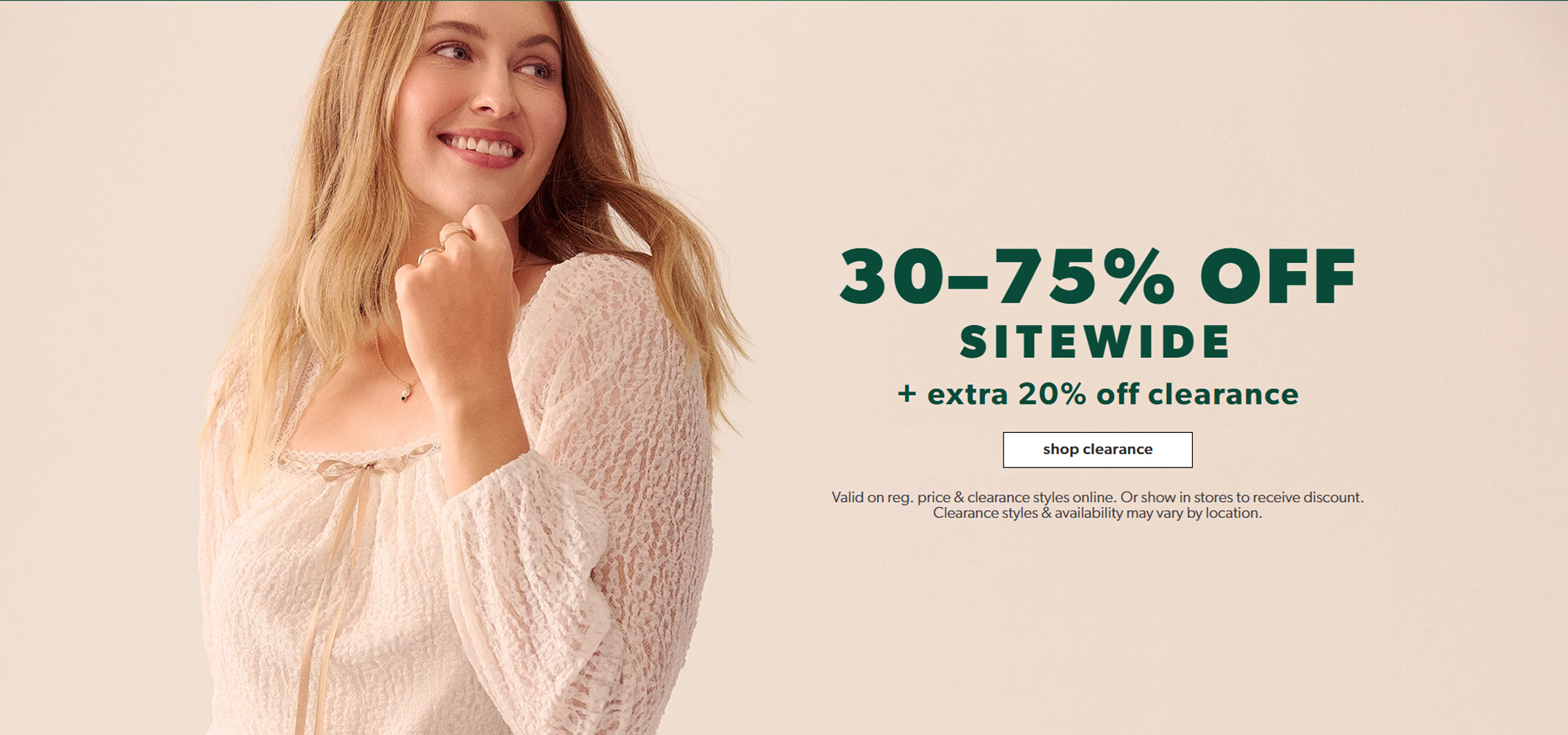 Valid on reg. price & clearance styles online. Or show in stores to receive discount. Clearance styles & availability may vary by location.