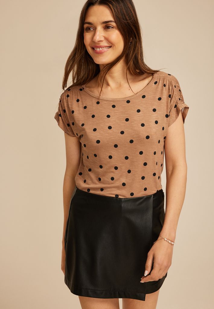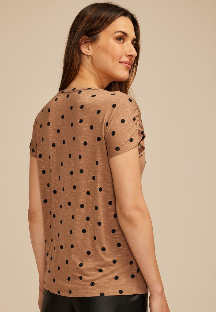 24/7 Fairhaven Polka Dot Ruched Shoulder Tee