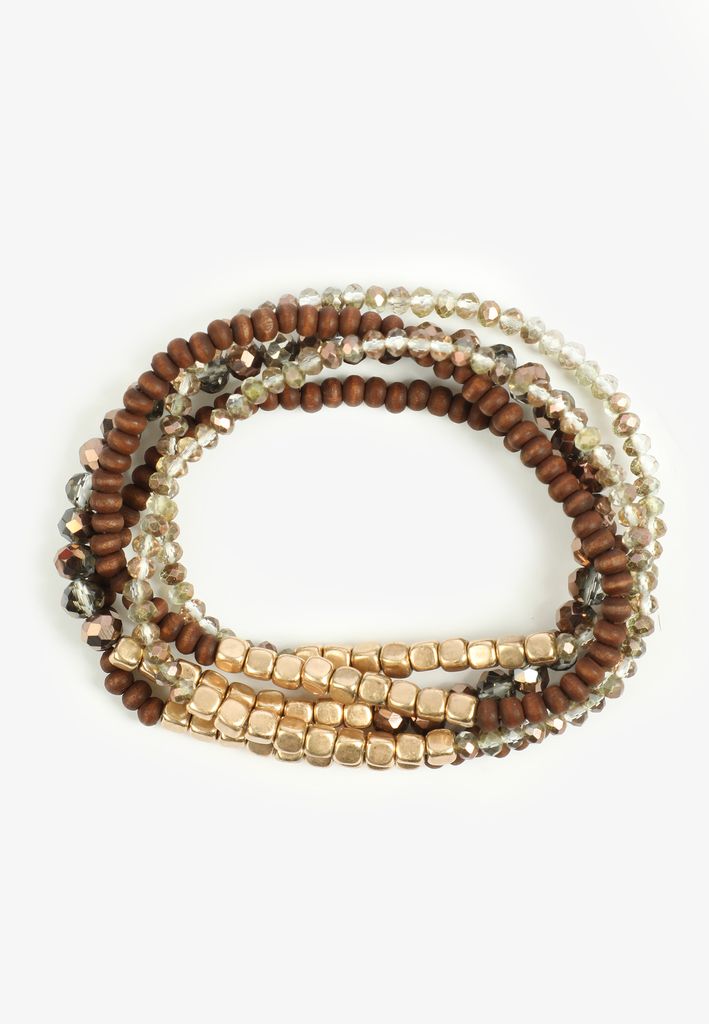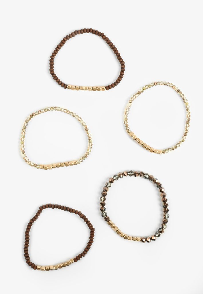 5 Pack Wooden Beaded Stretch Bracelet Set