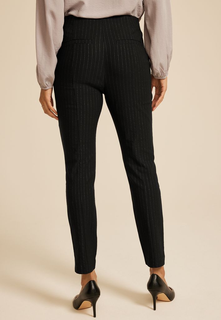 Bengaline Metallic Pinstripe Mid Rise Skinny Pant