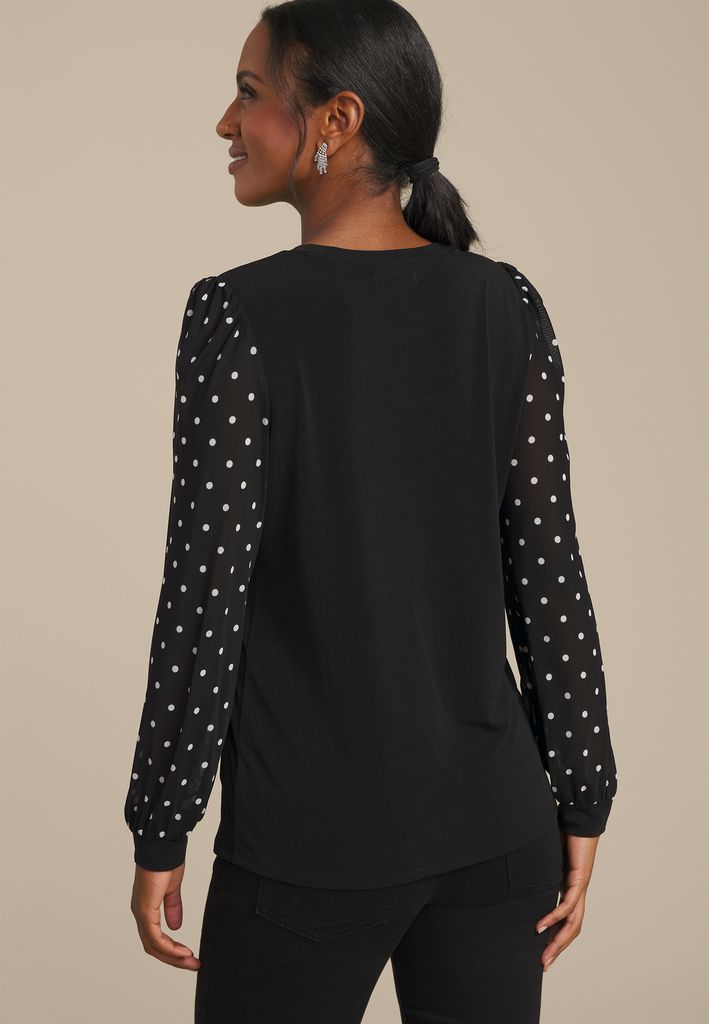 Be the first to review “Black Polka Dot Mesh Puff Sleeves Top”