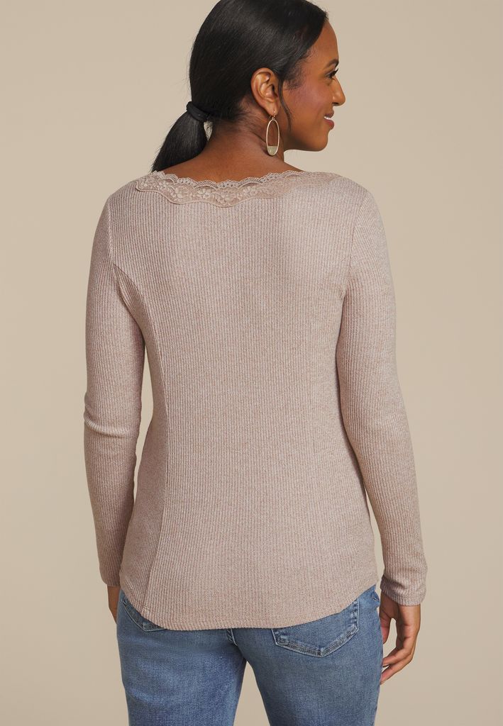 Be the first to review “Cozy Lace Trim V Neck Top”