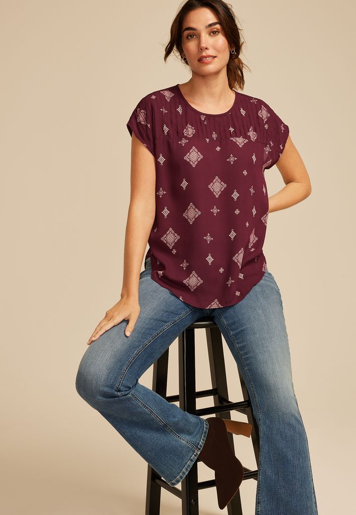 Delton Geo Print Pleated Blouse