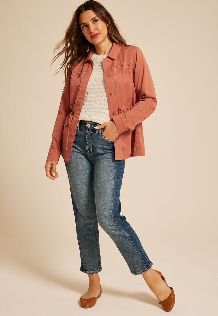 - cinched waist with adjustable drawstrings