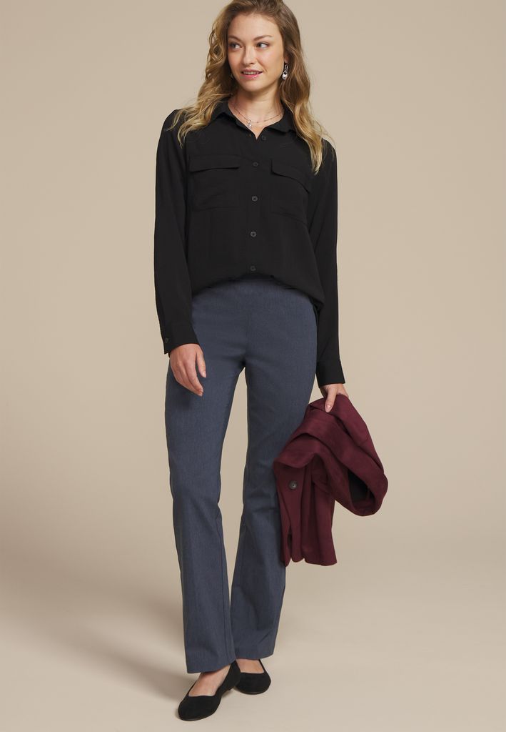 - bootcut: fitted thigh with a little flare at hem