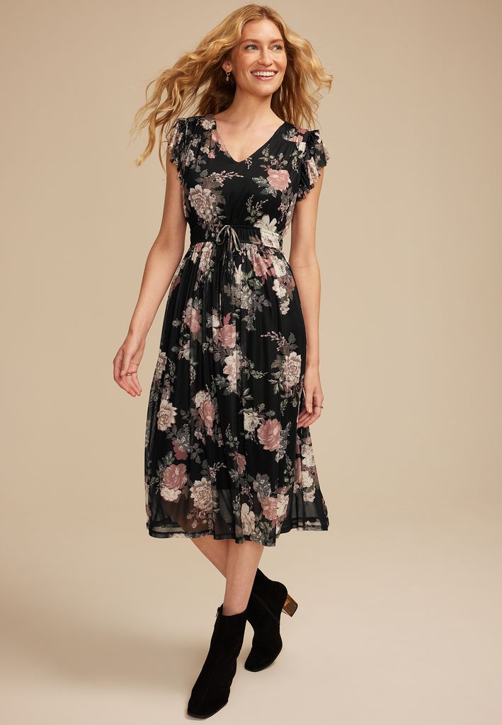 Be the first to review “Floral Mesh Flutter Sleeve Midi Dress”
