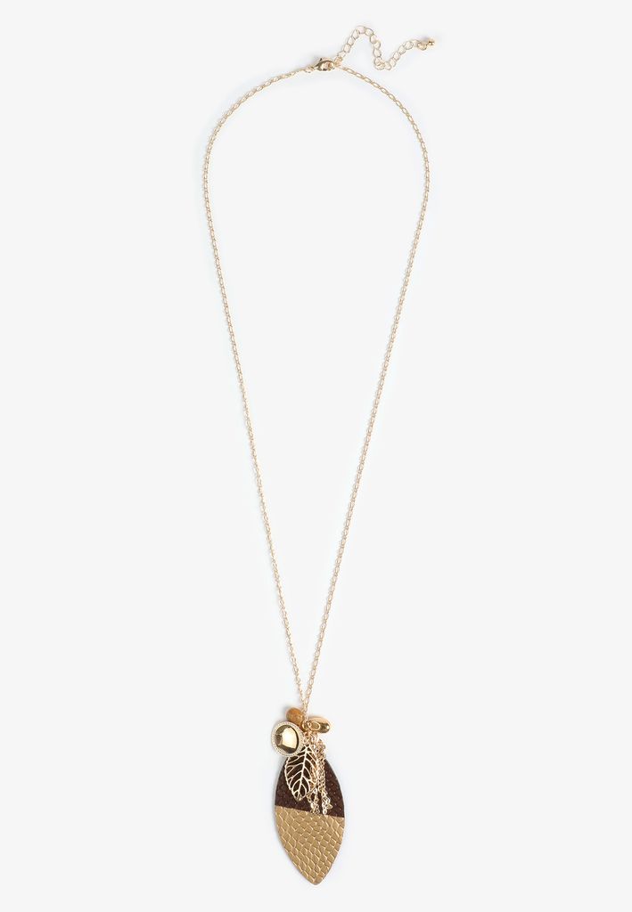 Gold And Brown Dipped Faux Leather Leaf Pendant Necklace