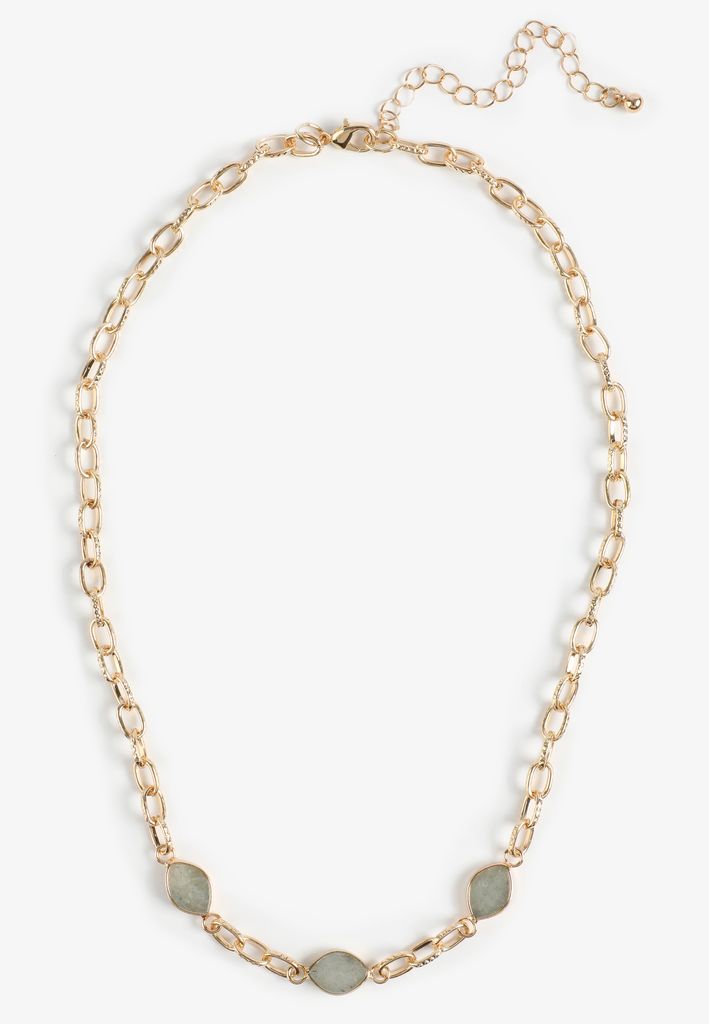 - featuring: elongated textured oval links accented by natural grey agate stones