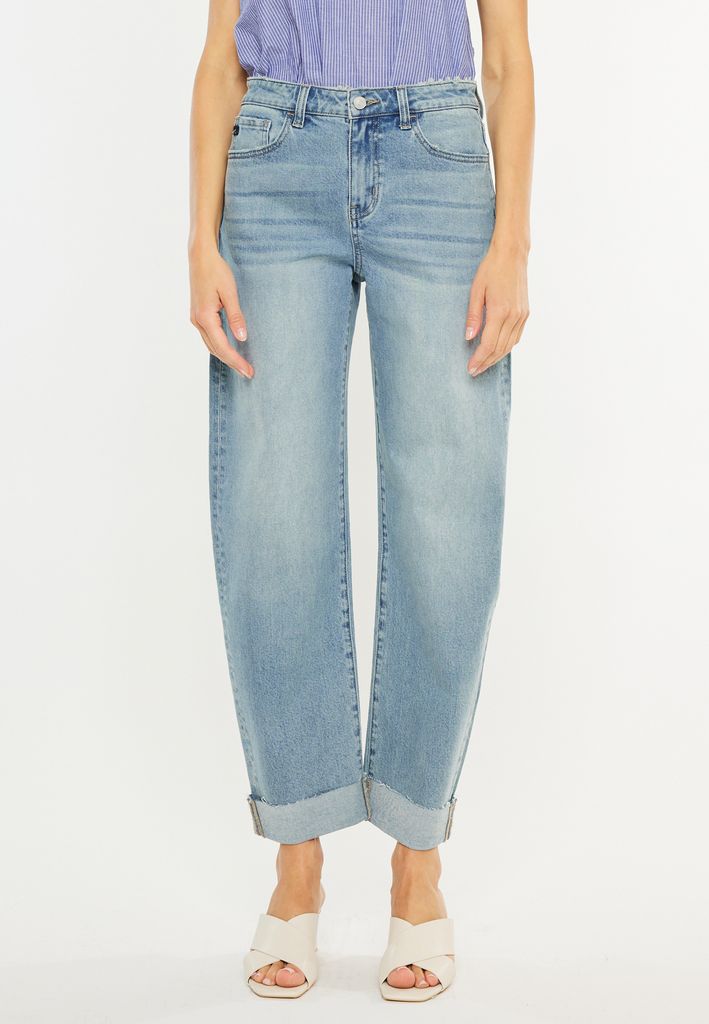 KanCan™ High Rise Raw Cuff Barrel Jean