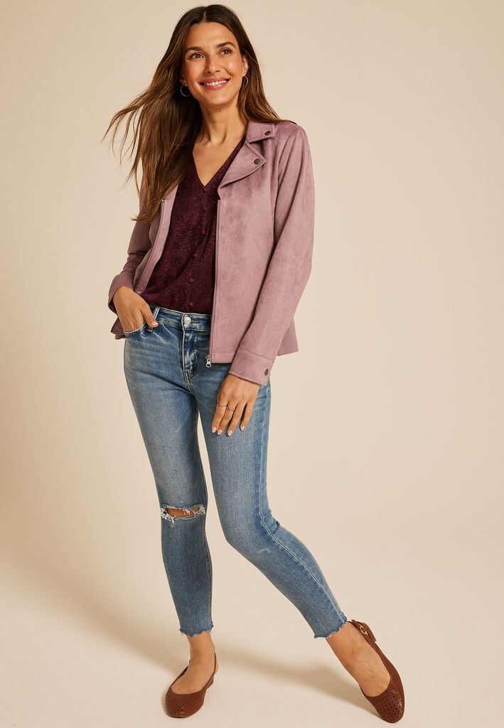 Be the first to review “Mauve Faux Suede Moto Jacket”