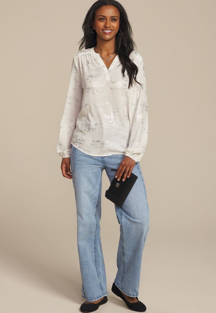 - long sleeves with gentle gathers and elastic cuffs for soft volume