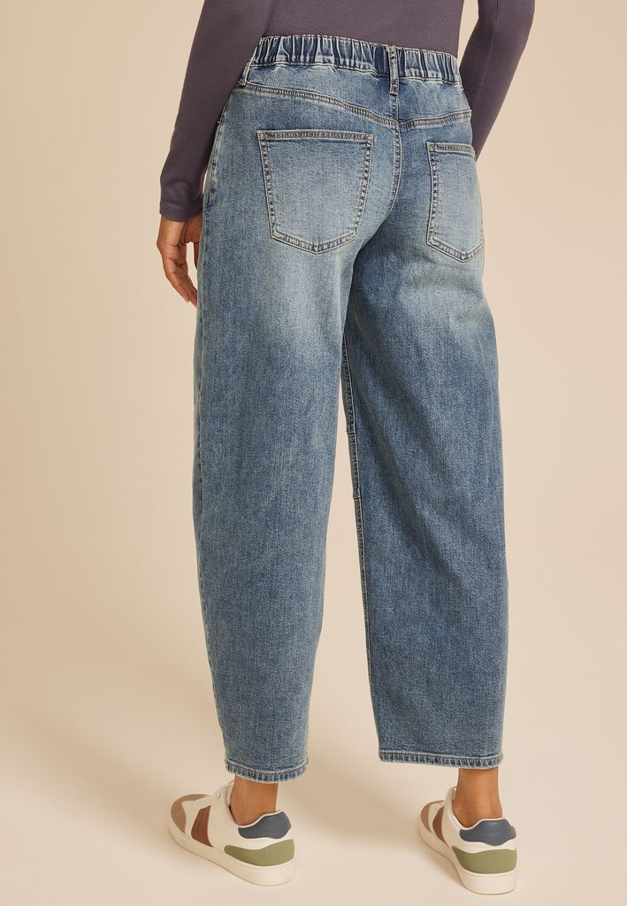 Be the first to review “Mid Rise Elastic Waist Barrel Jean”