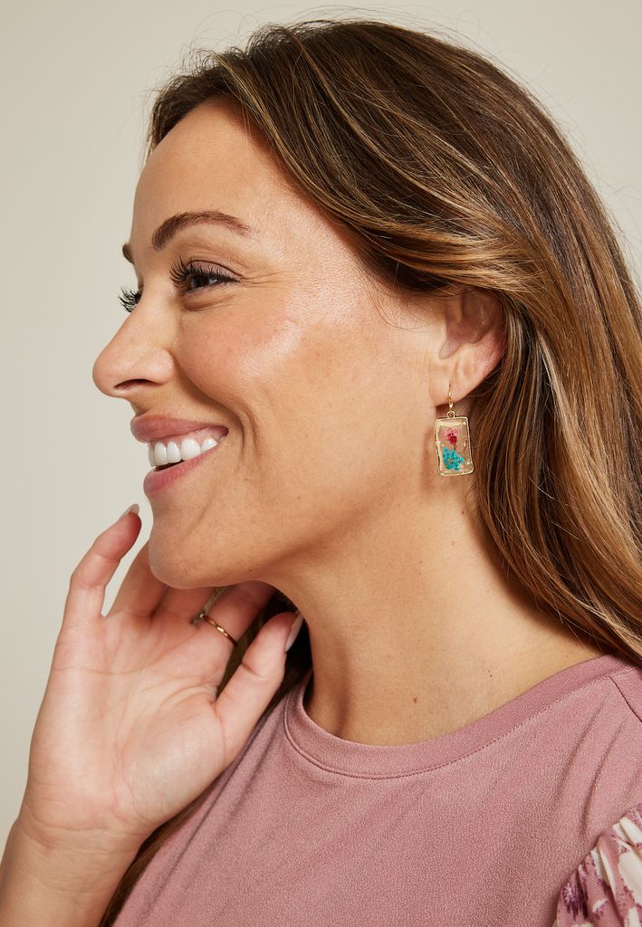 Pink And Turquoise Pressed Flower Earrings