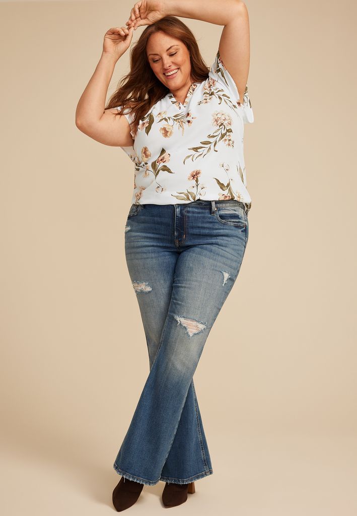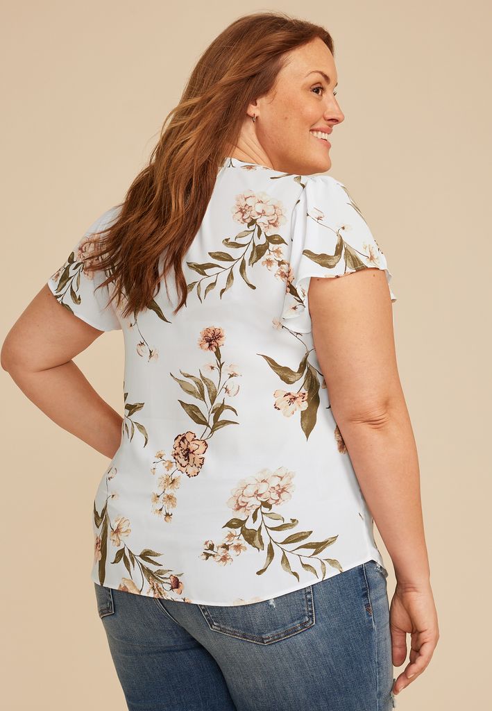 Plus Size Atwood Floral Flutter Sleeve Blouse