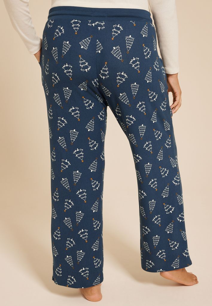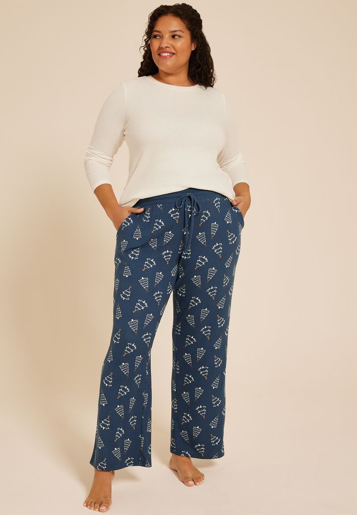 Plus Size Blue Hacci Christmas Tree Wide Leg Pajama Pants