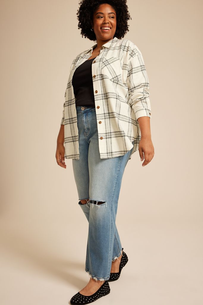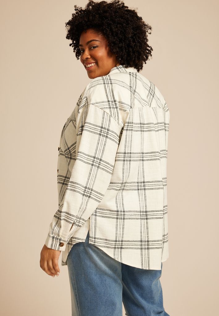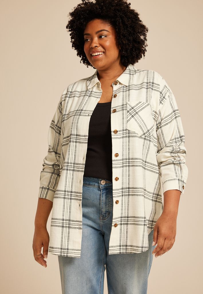 Plus Size Cabin Plaid Boyfriend Tunic Button Down Shirt