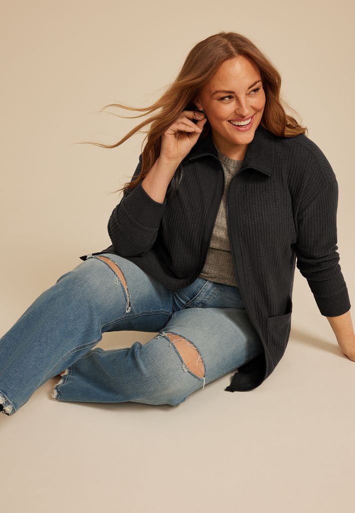 Be the first to review “Plus Size Cozy Waffle Zip Jacket”