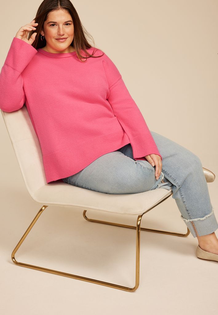 Elevate your everyday style with the Crew Neck Step Hem Sweater. The modern step hem creates a subtle high-low effect that adds dimension and effortless sophistication, while side slits offer comfort and versatility. Crafted from soft knit fabric, this piece drapes beautifully for a relaxed yet polished look—perfect for layering or wearing solo. A timeless silhouette with a contemporary twist, it’s the sweater that makes every outfit feel intentional.div>