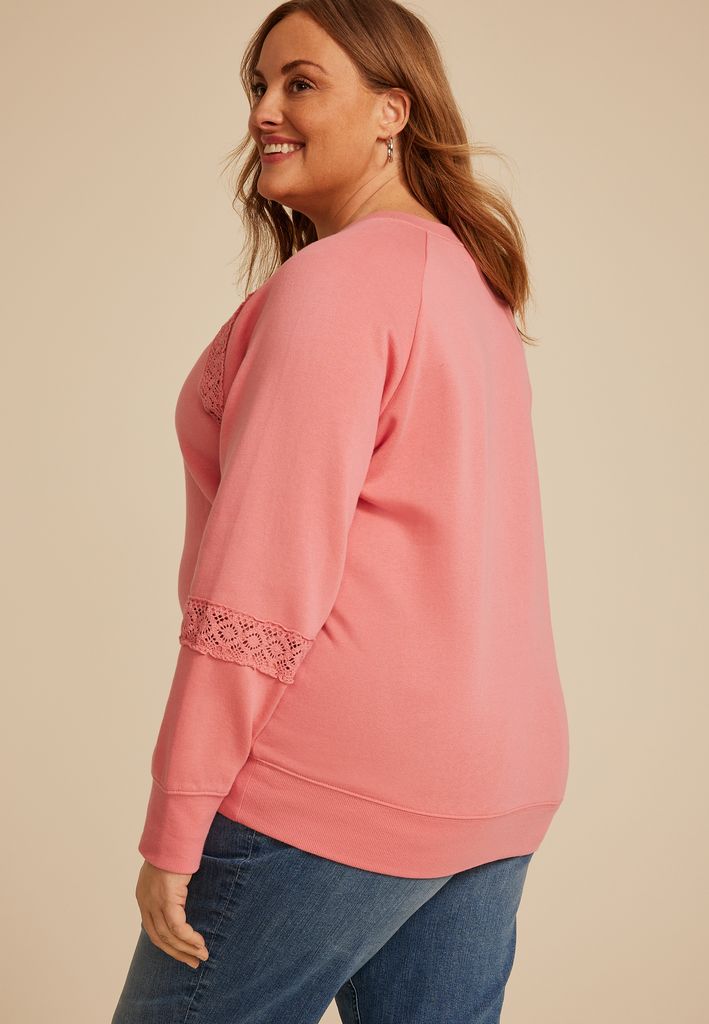 - delicate lace insets along the shoulders and lace band detail around the lower sleeve