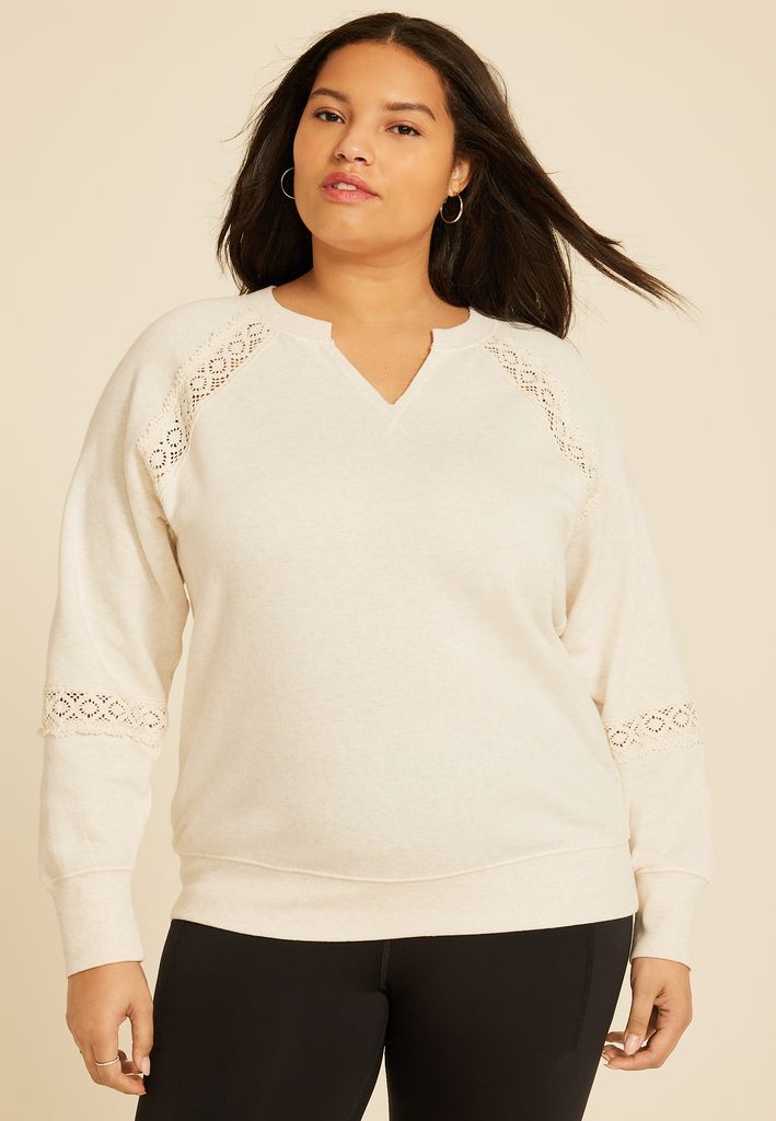 Plus Size Crochet Mix Relaxed Fit Sweatshirt