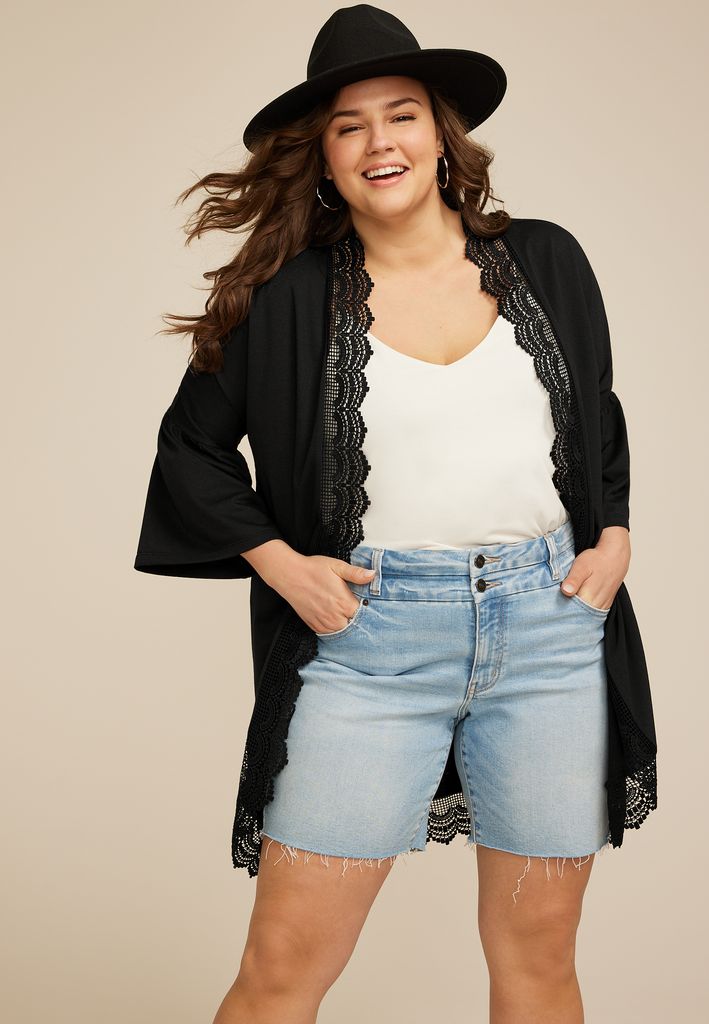 Be the first to review “Plus Size Crochet Trim Curved Hem Kimono”