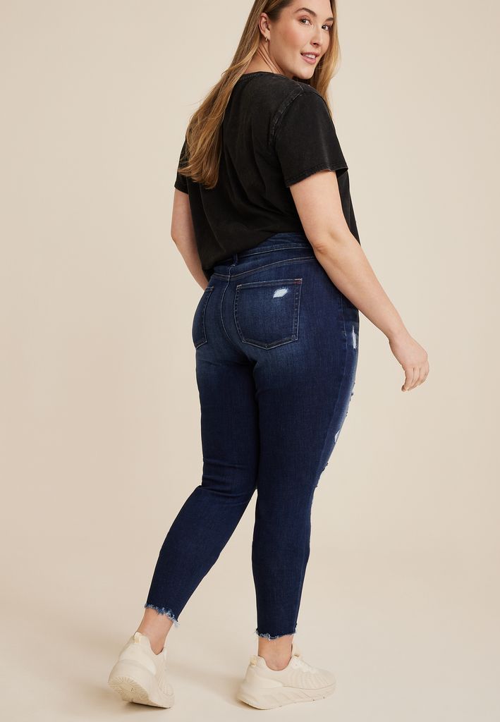 - curvy fit: designed to flatter with more room in the hip and thigh and eliminates waist gapping.