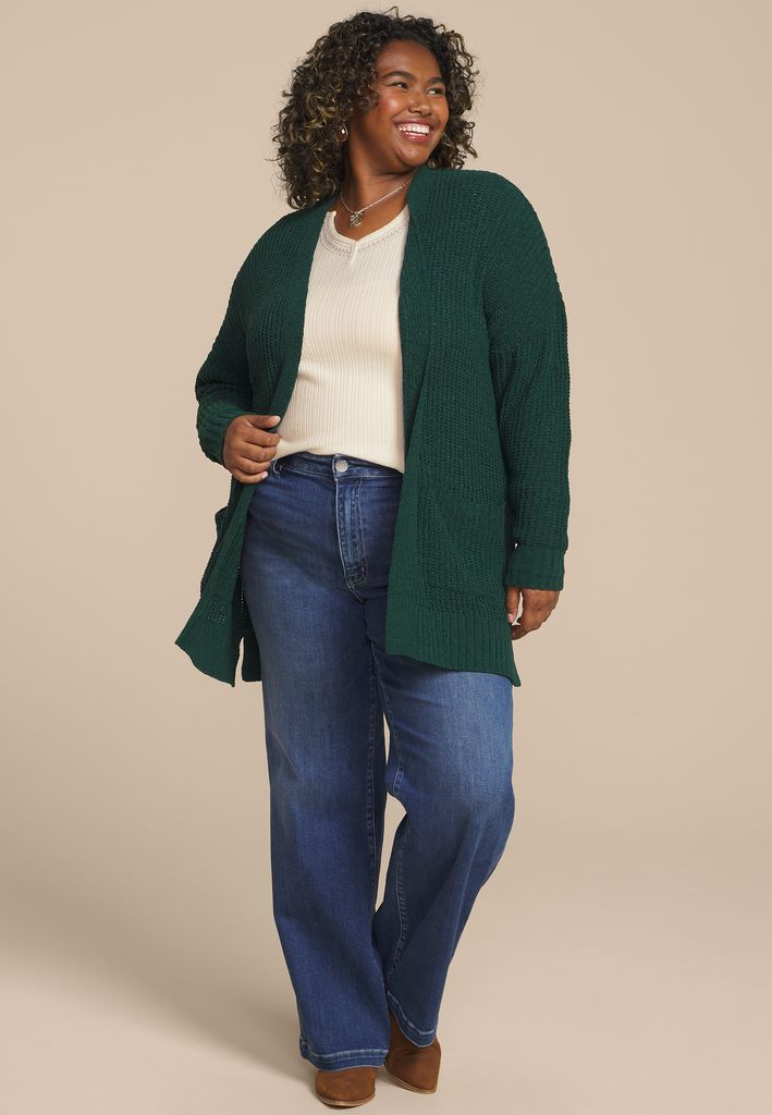 Plus Size Embroidered Notch Neck Ribbed Long Sleeve Tee