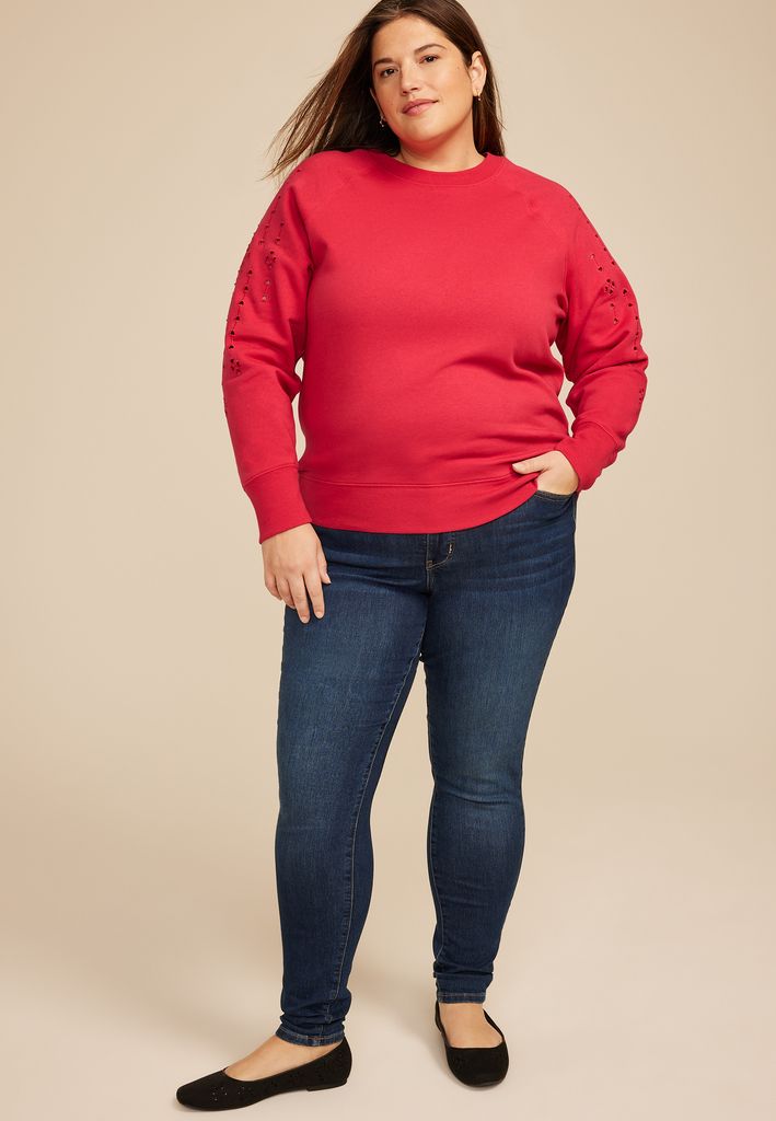 - long sleeves with heart shaped eyelet cutouts along the sleeves