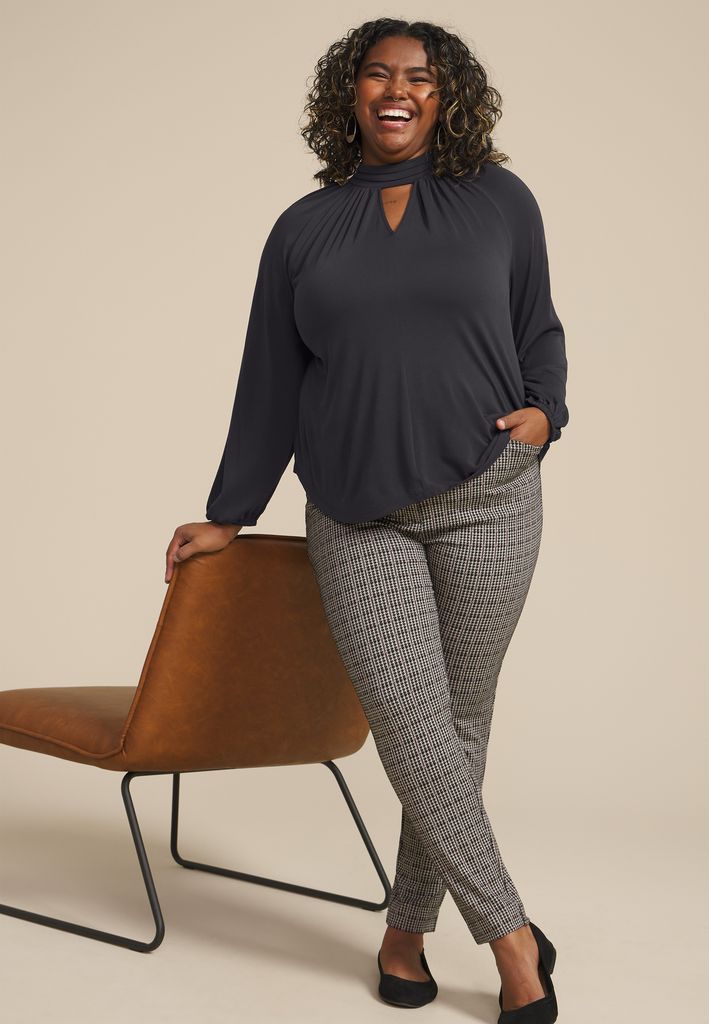 Plus Size Keyhole Neck Blouson Sleeve Blouse