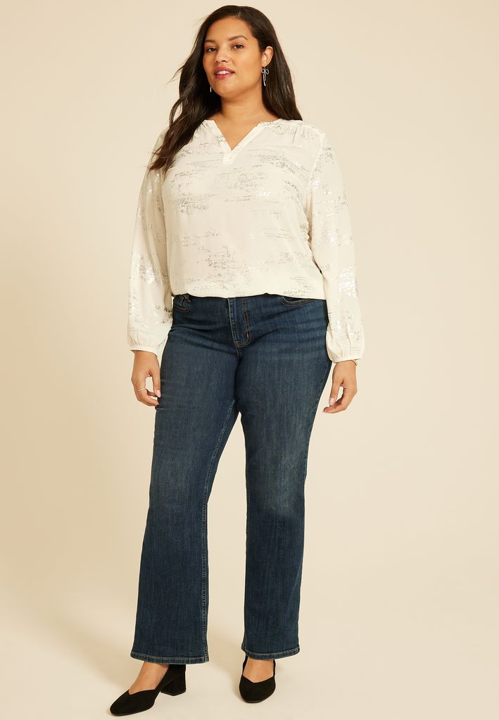 Be the first to review “Plus Size Metallic Abstract V Neck Blouse”