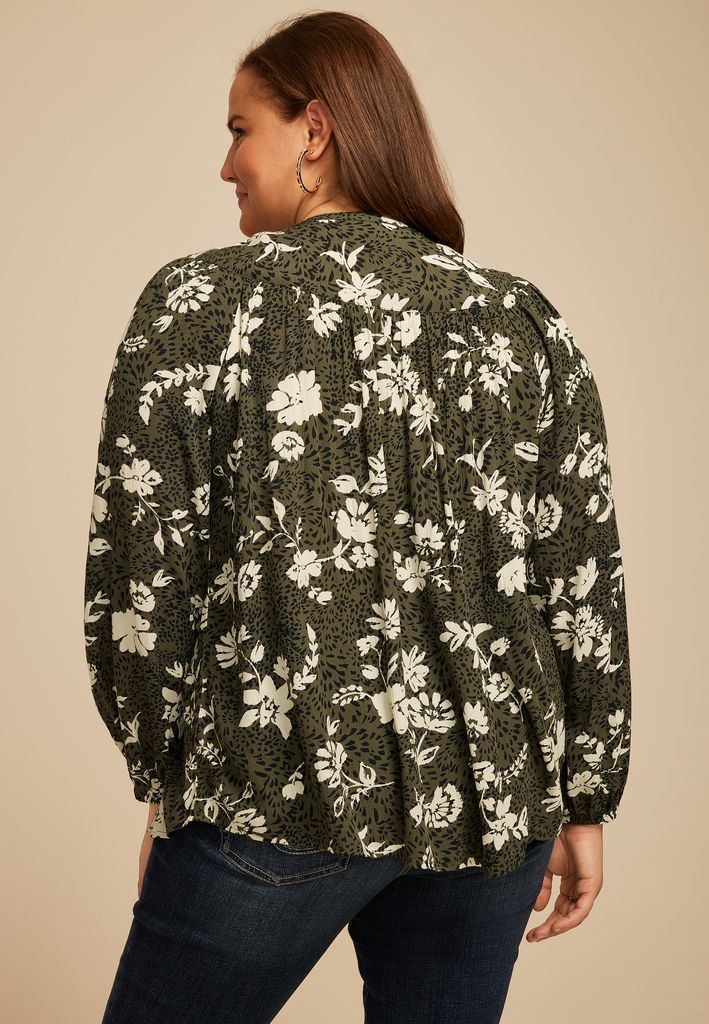 Be the first to review “Plus Size Olive Floral Peasant Blouse”