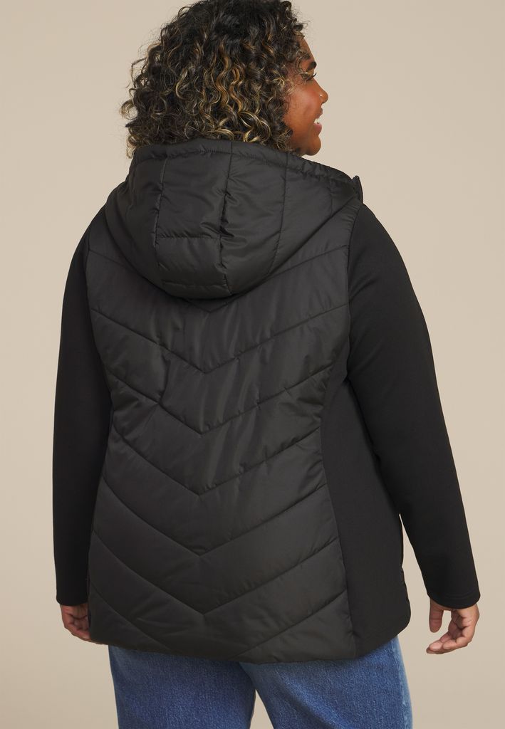 Plus Size Quilted Knit Hooded Jacket