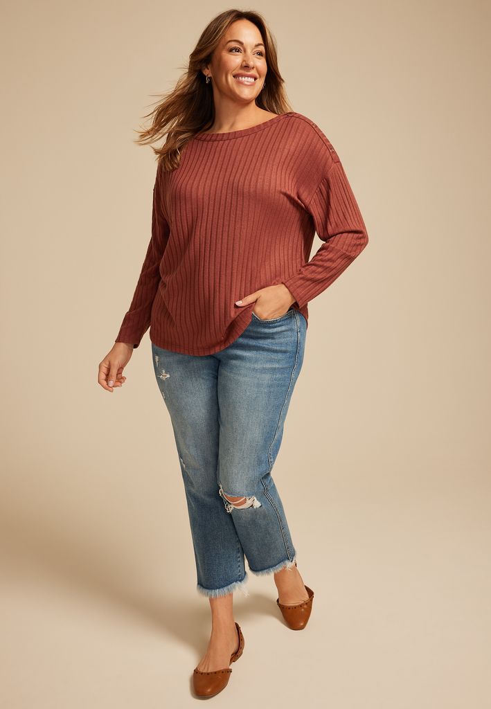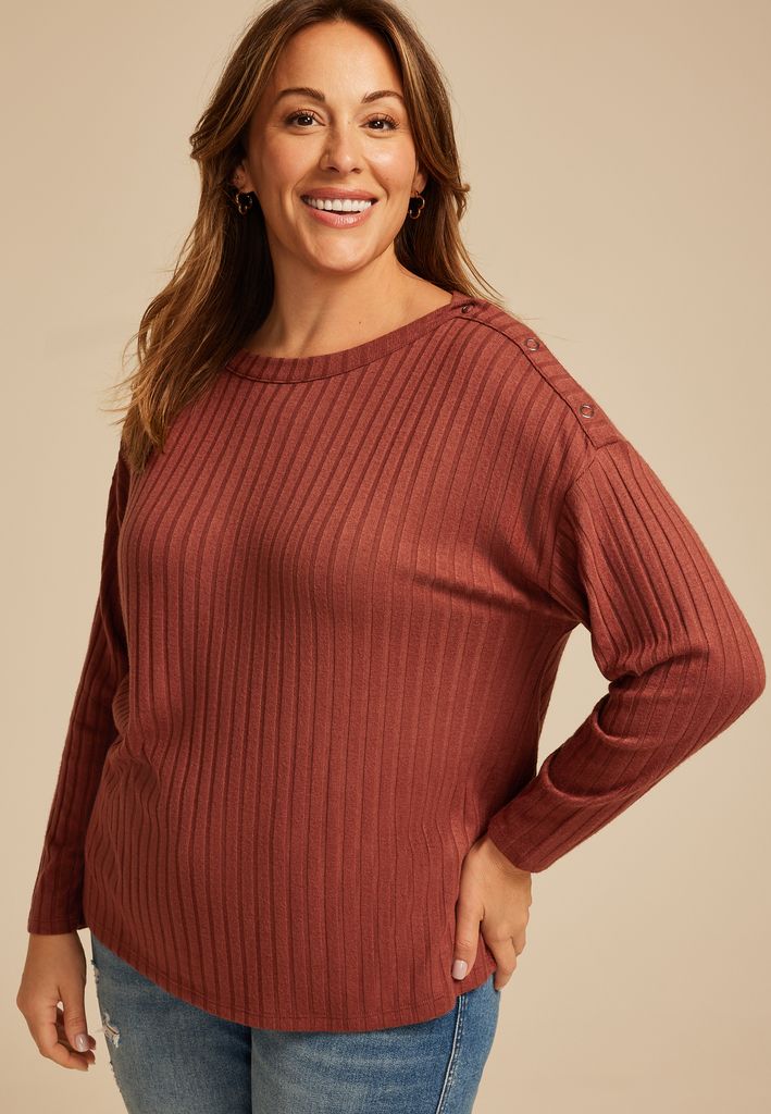 Be the first to review “Plus Size Ribbed Knit Snap Shoulder Top”