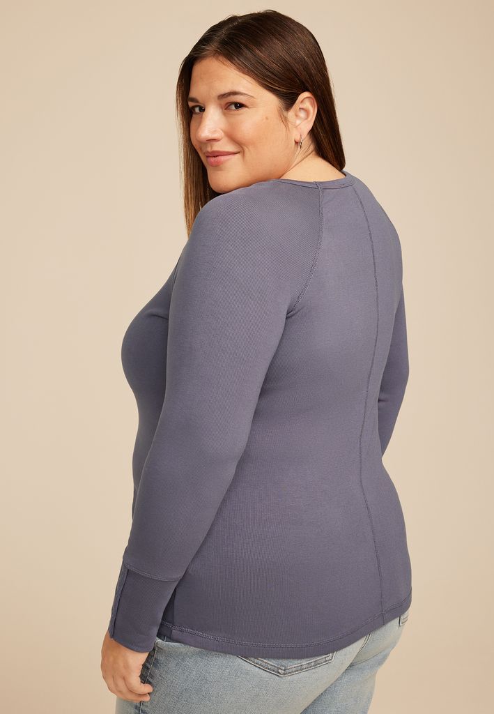 Plus Size Soft Essential Crew Neck Snap Cuff Top