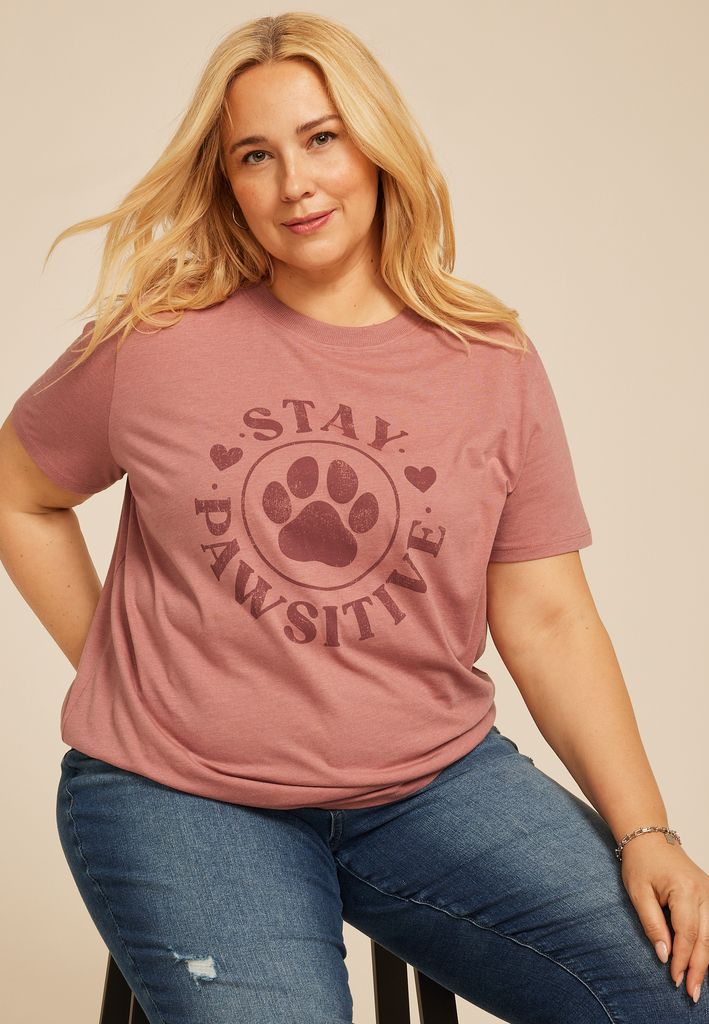 - ” Stay Pawsitive” paw print and hearts graphic