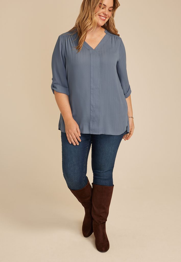 Be the first to review “Plus Size Striped 3/4 Sleeve Tunic Blouse”