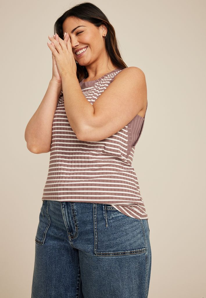 Plus Size Striped Ribbed Side Gusset Tank Top