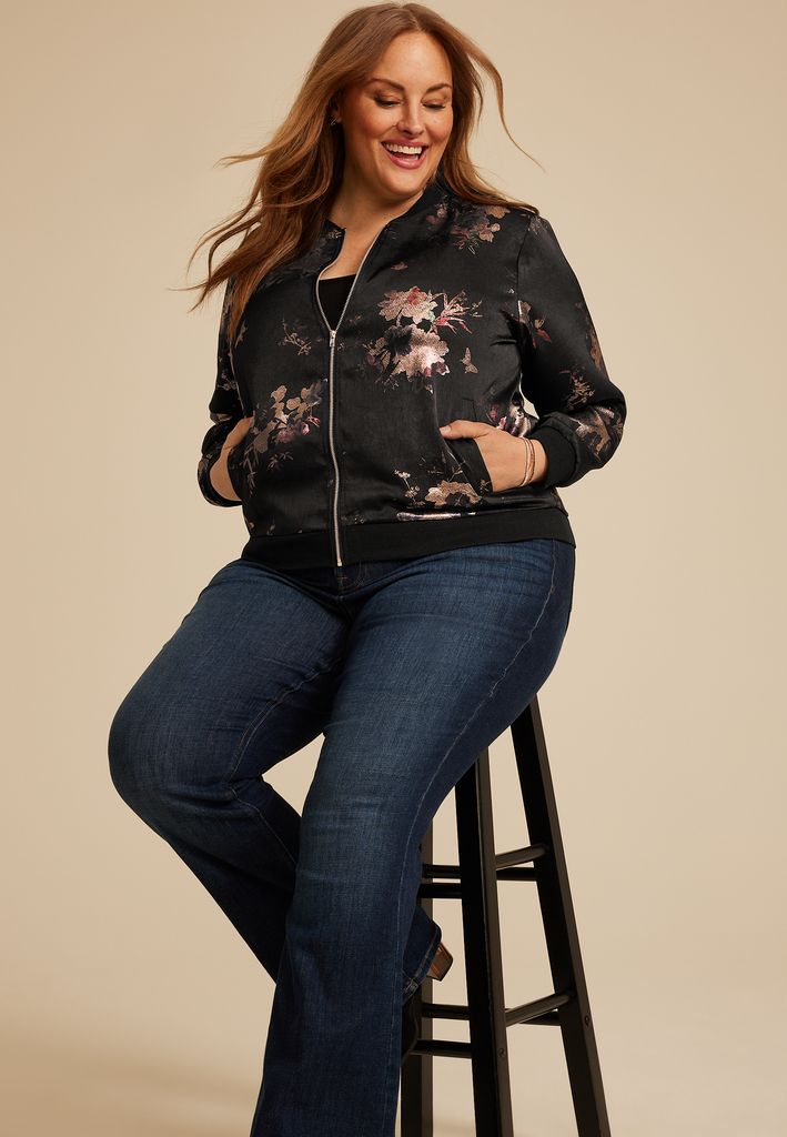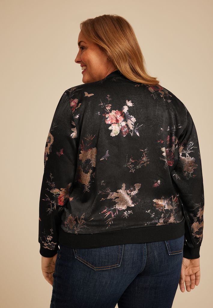 Plus Size Studio Y Metallic Floral Bomber Jacket