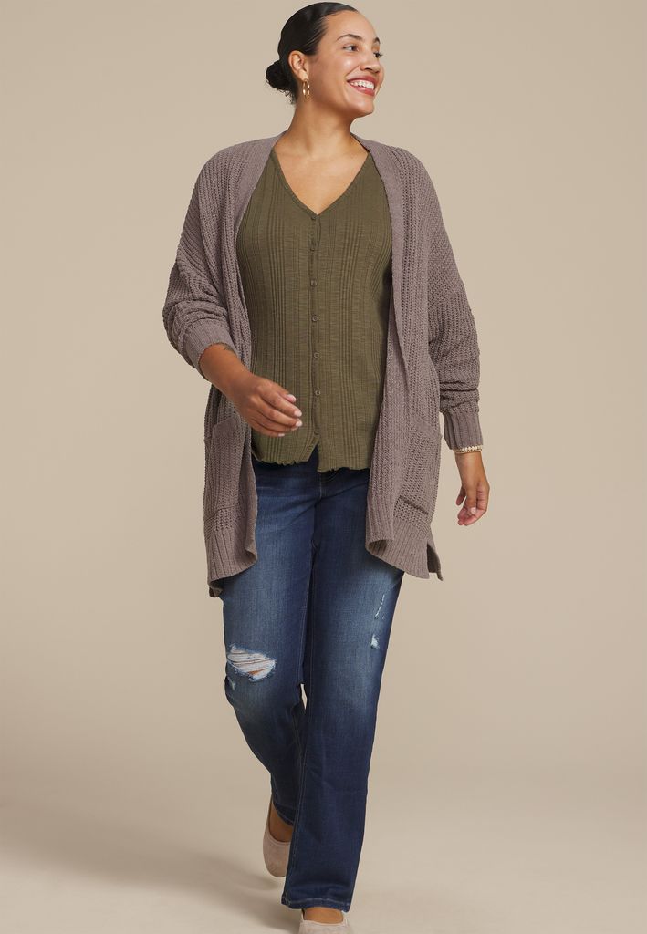 Plus Size Variegated Button Front Tank Top