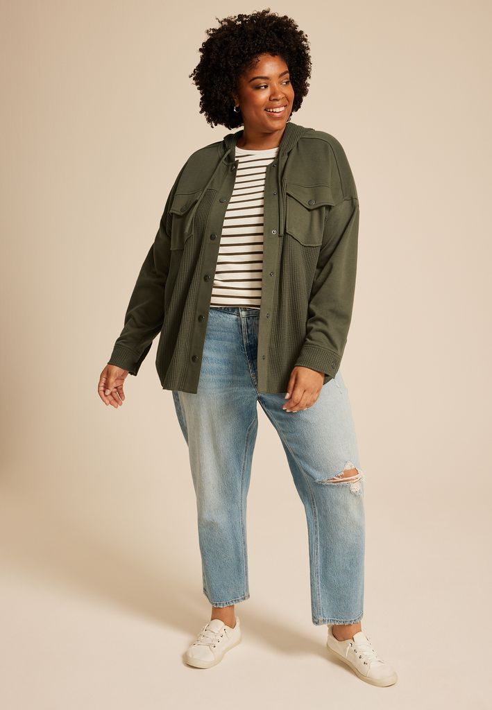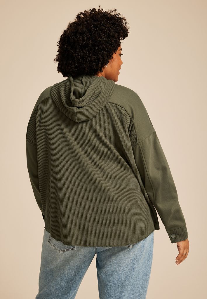 Plus Size Waffle Knit Hooded Shacket