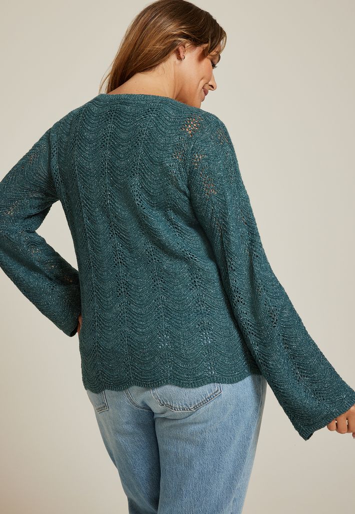 Plus Size Wave Stitch Bell Sleeve Sweater
