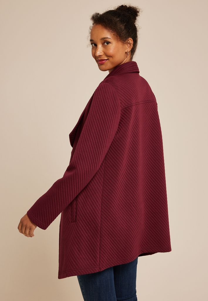 - oversized draped shawl collar for a cozy elegant look