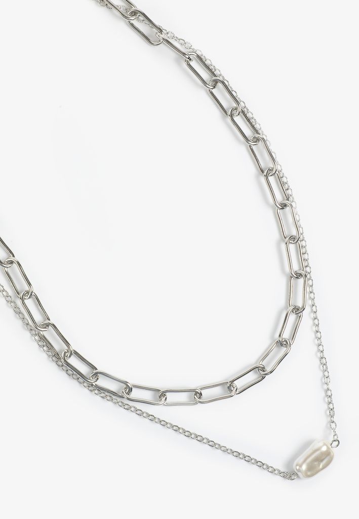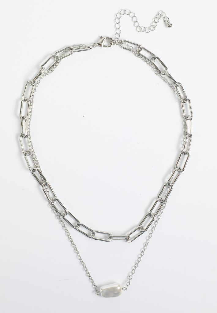 Be the first to review “Silver Hammered Pearl Double Layered Necklace”