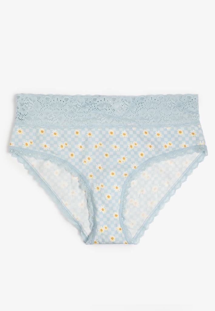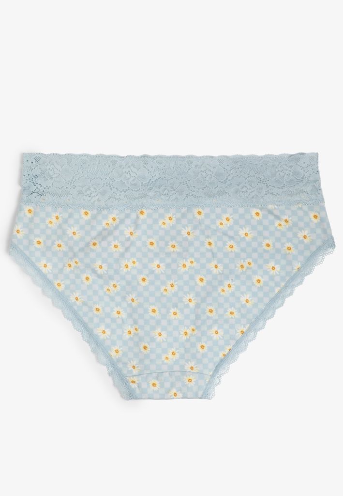 - stretchy lace waist band and lace trim