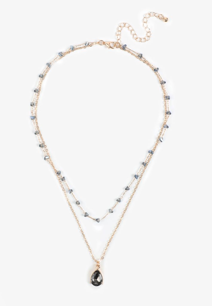 Smokey Blue Teardrop Pendant Layered Necklace