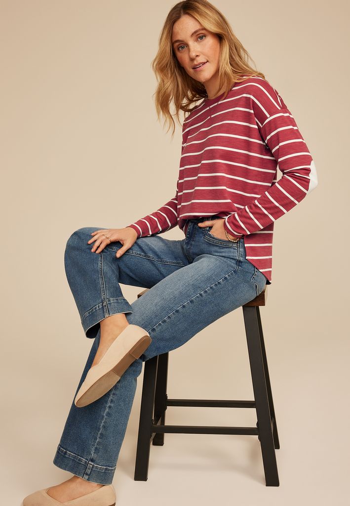 Be the first to review “Striped Heart Elbow Patch Long Sleeve Tee”