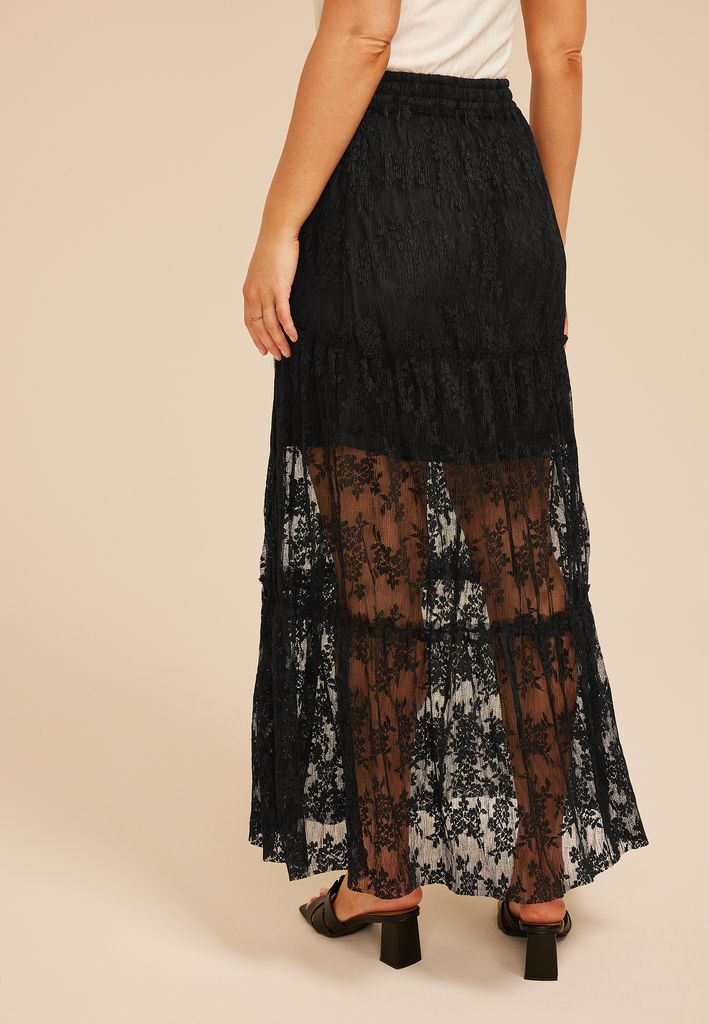 - two tier construction lined with a solid upper layer of fabric and a sheer lace overlay