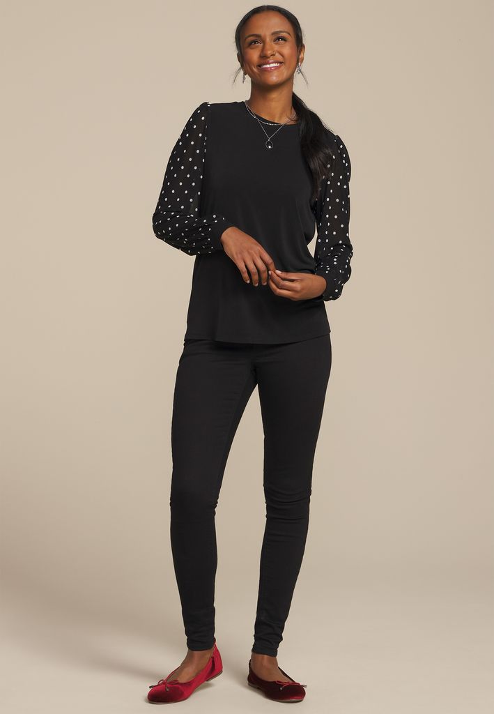 Be the first to review “Black Polka Dot Mesh Puff Sleeves Top”