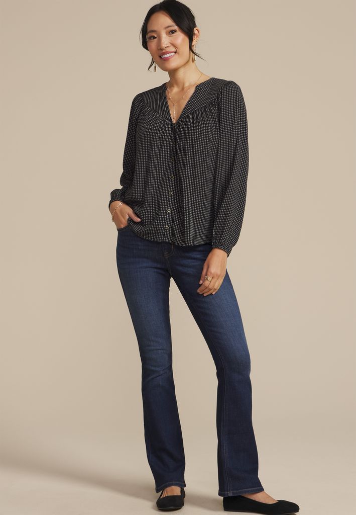• v neck with button front detail