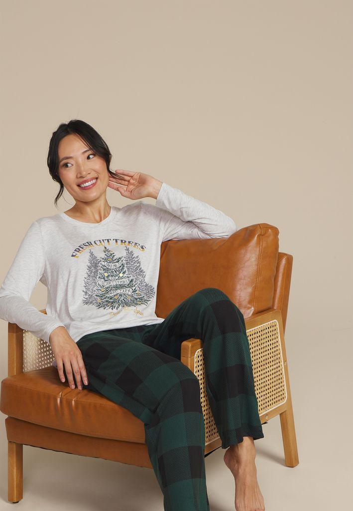Christmas Tree Farm Graphic Tee And Wide Leg Pajama Set